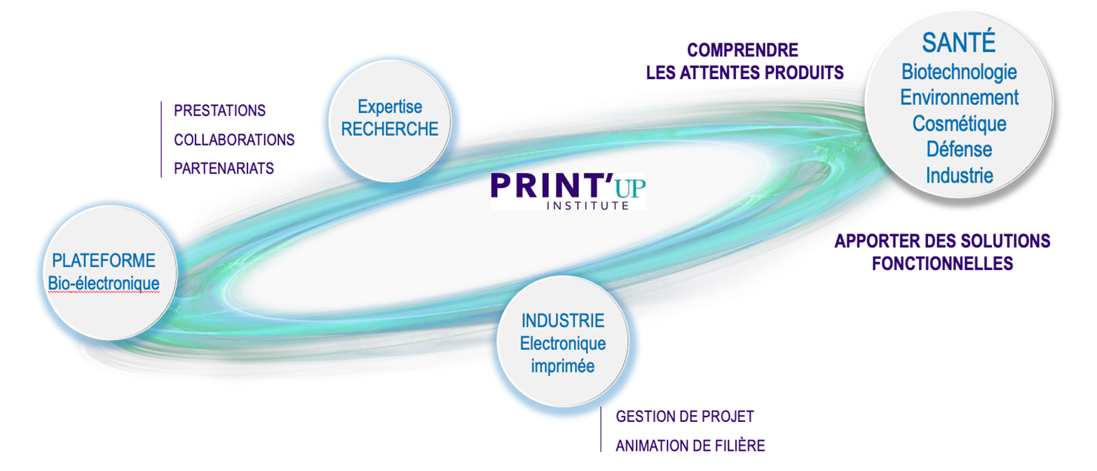 PRINTUP INSTITUTE a pour objectif d’accélérer le développement de la filière de l’électronique imprimée pour la santé, de la recherche moléculaire à la fourniture de dispositifs médicaux. L’institut structure, anime et développe ce réseau avec des synergies entre l’expertise des praticiens de santé, les savoir faire scientifiques et technologiques de l’Université Paris Cité et l’ensemble de partenaires industriels sur toute la chaîne de valeur de l’électronique imprimée.